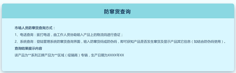 所以,給產品增加防偽方案,讓產品經銷商和客戶在拿到產品時,可以根據產品所帶的防偽號碼到廠家查詢,確認產品是正品。這樣廠家