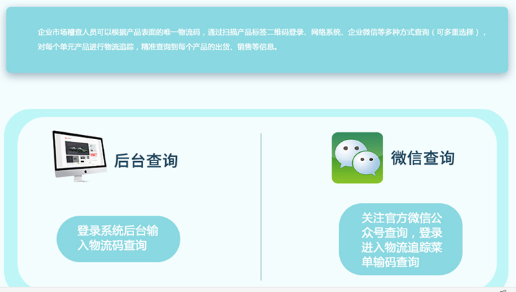 條碼編碼技術、數據采集技術,開發的一個集多種先進技術和手段于一體的、專門解決企業產品防偽管理、產品防竄貨管理、經銷商管理、
